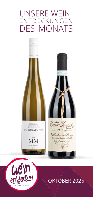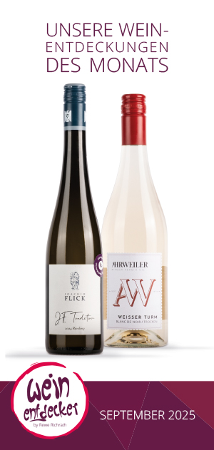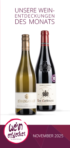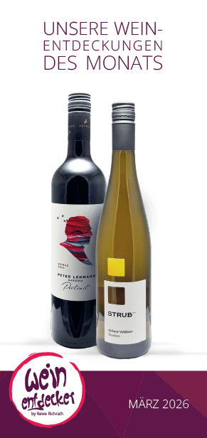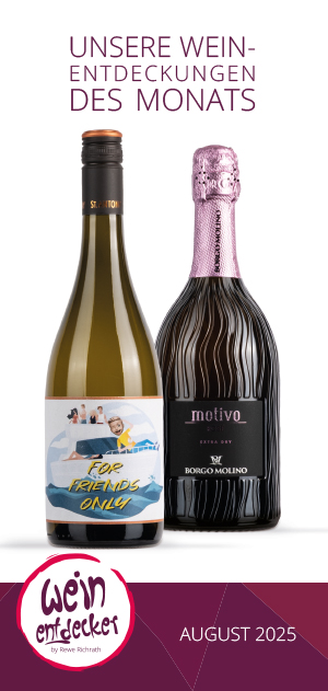 Am Anfang eines jeden Monats erhalten Sie versandkostenfrei (!) mindestens zwei ausgesuchte Weine direkt zu Ihnen nach Hause geliefert. Ausgewählt von Richrath’s Weinkompetenzteam. Sie erhalten zu jedem gelieferten Wein eine ausführliche Beschreibung mit Informationen über den Wein, den Winzer, das Weingut, eine Speisenempfehlung und vieles mehr. Desweiteren haben Sie die Möglichkeit, die aktuellen Weine, bis zum Ende des Monats mit einem Entdecker-Rabatt von 10% nachzubestellen. Ab einem Bestellwert von 55,– € versenden wir Ihre bestellten Weine versandkostenfrei (darunter berechnen wir 4,90 € Versandkosten).